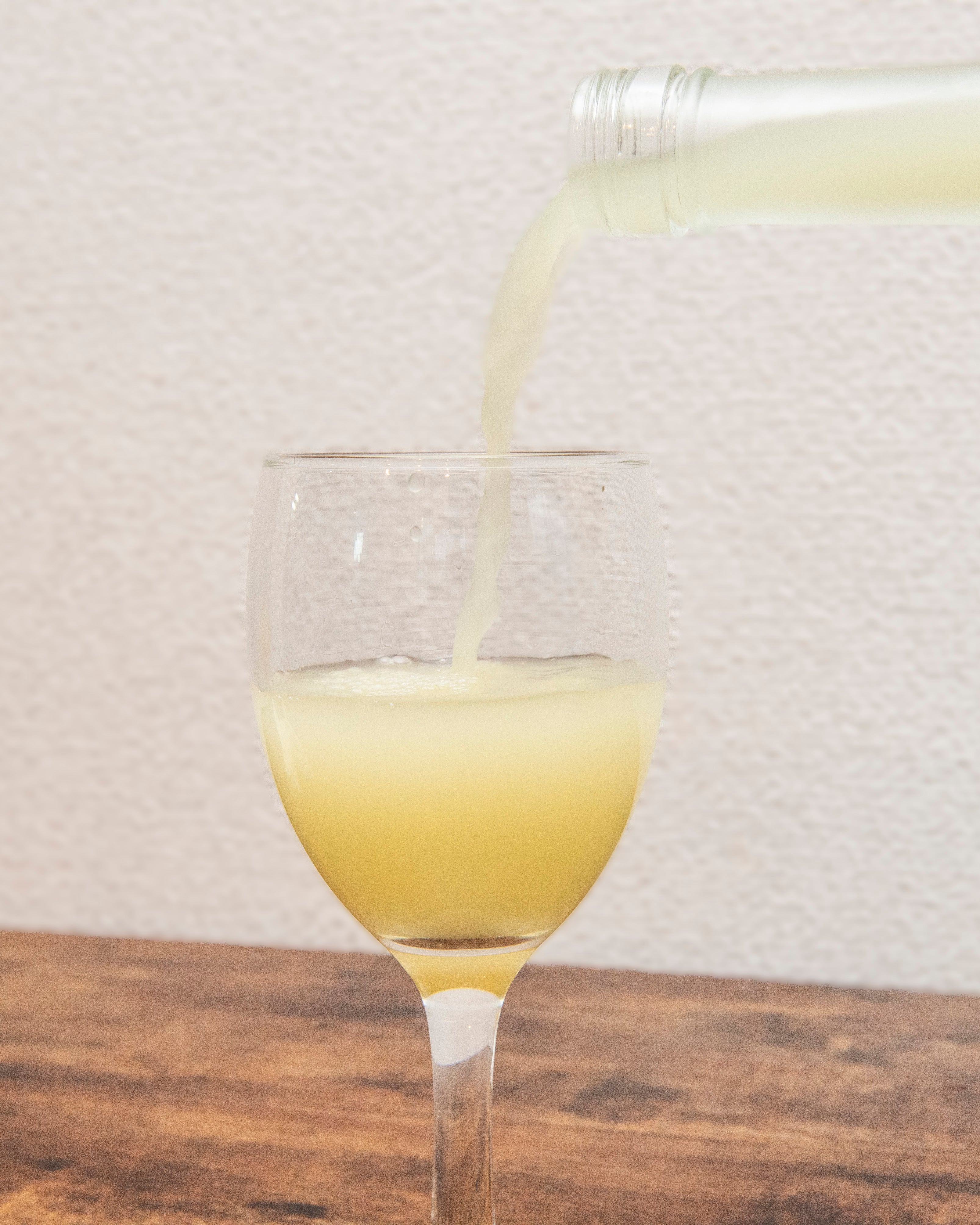 グラスに注ぐと、透明感のある淡いイエローがやさしく揺らぎます。ふわっと立ち上る香りは、古座川ゆずの皮をぎゅっと絞ったような鮮烈な柚子の柑橘感と、白ワインならではのクリアな果実アロマが調和。爽やかな酸味がまず口の中に広がり、その後に控えめな甘みがやさしく伸びてくるバランス。皮由来のほのかな苦味がアクセントとなり、後味はキリッと切れ味よく爽快です。
